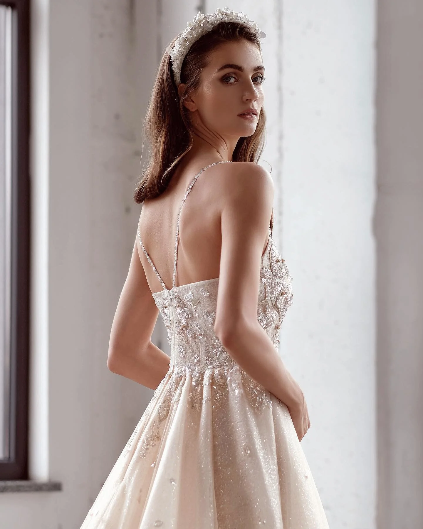 A stunning fully beaded champagne blush gown - with a detachable skirt for that two looks in one! Easily switch out to a classic fitted silhouette in this intricate detailed evening gown.